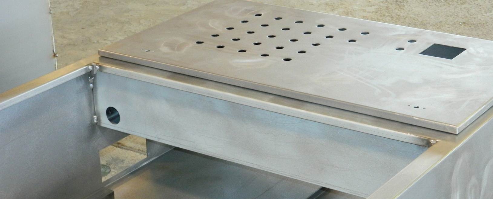 We work in Mild Steel, Stainless Steel, Zincalume, Aluminium and Brass. Switchboards are machine formed then each seam is fully MIG or TIG welded.